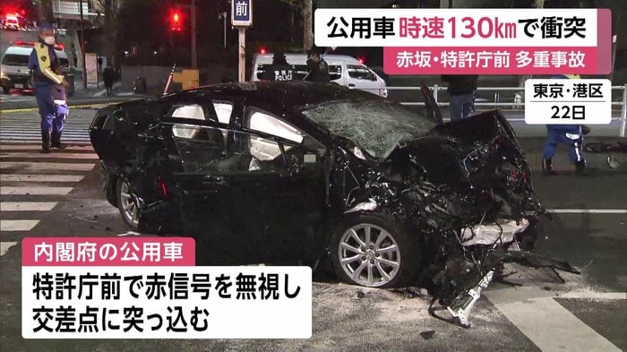 内閣府の公用車が信号無視して交差点に突っ込み、7人が死傷した事故で、公用車が時速約130キロで衝突していたことがわかった。