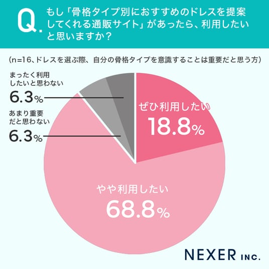 続いて、骨格タイプを意識することが重要だと思う方に「骨格タイプ別におすすめのドレスを提案してくれる通販サイト」があったら利用したいかを聞いてみました。