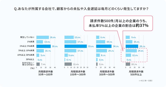 ・請求件数500件超の企業の約37%が、未払い率5%以上