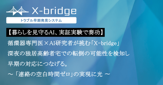 株式会社X-bridge(クロスブリッジ)(本社:東京、代表取締役、医学博士 掛橋 昇太)は、2025年12月10日より実施している独自のAIによる「トラブル早期発見システム(TM) (特許出願中)」の実証実験において、2026年1月12日、自律型AIが状況を理解し、指定された連絡先へ通知を行ったことで、独居高齢者への早期対応につながったことをご報告します。