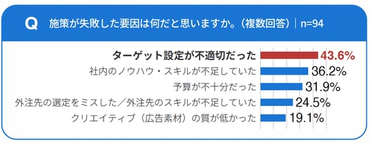 さらに、その施策が失敗した要因について質問したところ、「ターゲット設定が不適切だった」が43.6%で第1位 となりました。