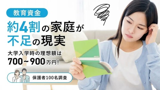 塾選ジャーナルでは、大学生の子どもを持つ保護者100人を対象に教育資金の実態調査を実施。その結果見えてきたのは、「理想(700~900万円)」と「現実(300~500万円)」のあいだにある数百万円もの差でした。実に4割もの家庭が「資金不足」に直面しているのが現状です。
