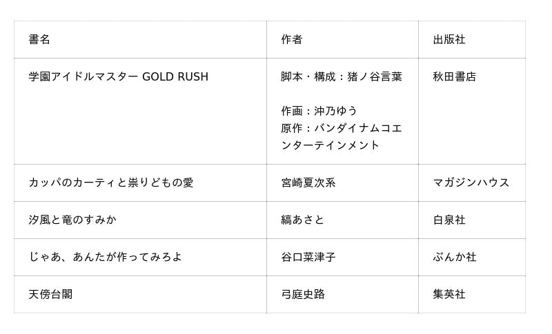 「出版社コミック担当が選んだおすすめコミック2026」Pick up 5作品 ※タイトル五十音順