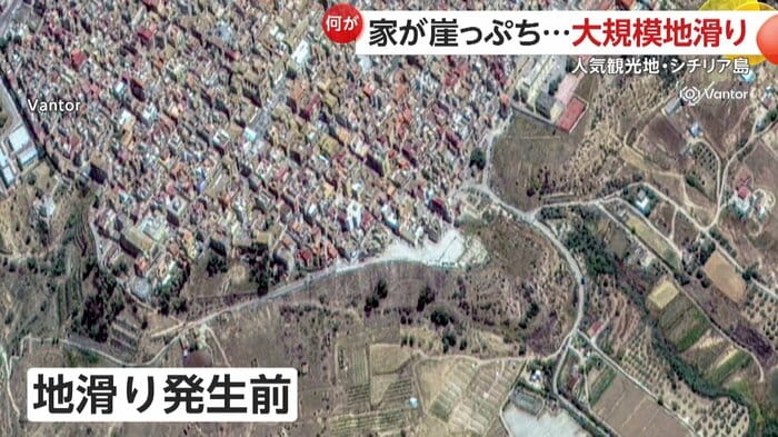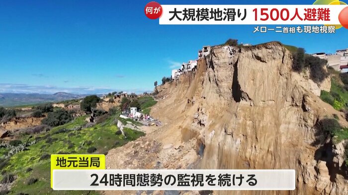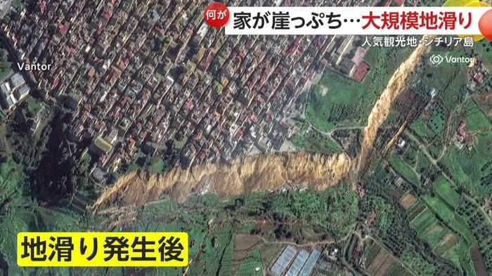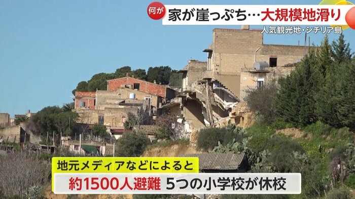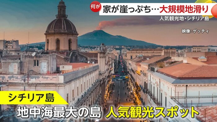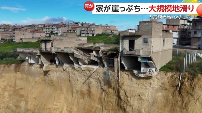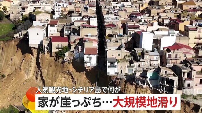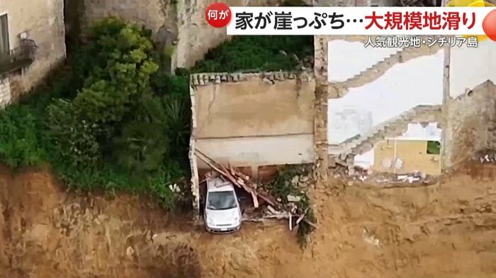 イタリアのシチリア島で25日大規模な地滑りが発生し、約4キロにわたって斜面が崩れた。