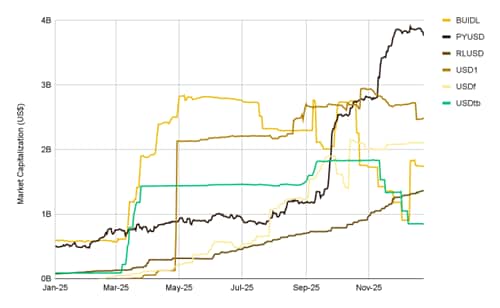 図3:新たに6種類のステーブルコインが時価総額10億米ドル超えを記録 出所:Artemis、Binance Research(2025年12月31日時点)