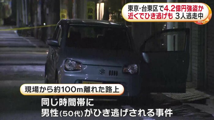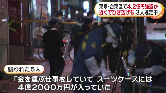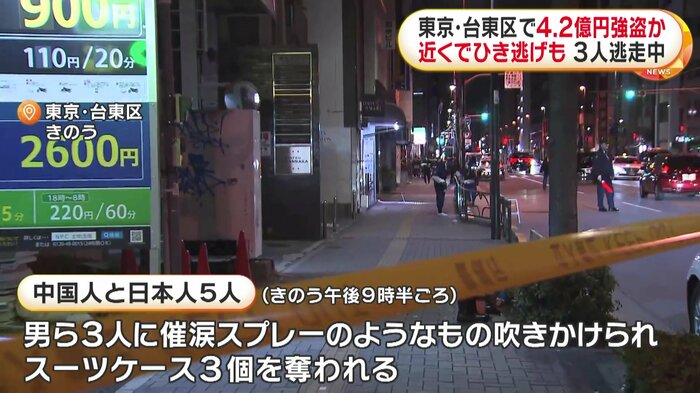 東京・台東区の路上で29日夜、現金4億2000万円が入っていたとみられるスーツケースが奪われる事件があった。