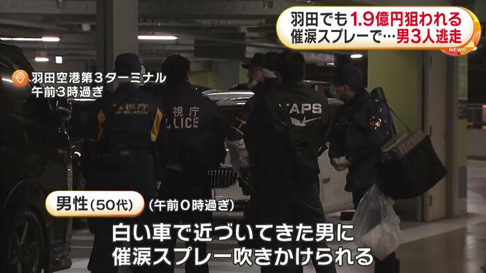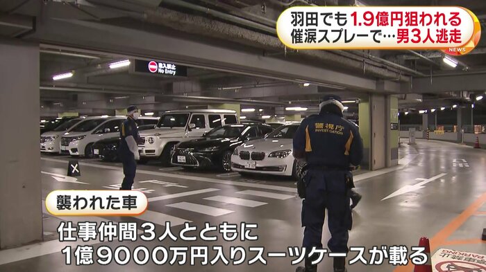 また、羽田空港の駐車場で、現金1億9000万円を積んだ車が襲われた。