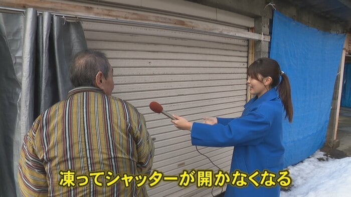 シャッターを閉めてさらにカーテンもする理由と尋ねると、「凍ってシャッターが開かなくなる」と住民は答えてくれた。
