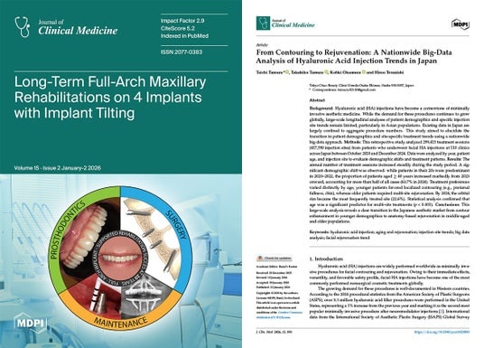 論文タイトル:From Contouring to Rejuvenation: A Nationwide Big-Data Analysis of Hyaluronic Acid Injection Trends in Japan掲載誌:Journal of Clinical Medicine