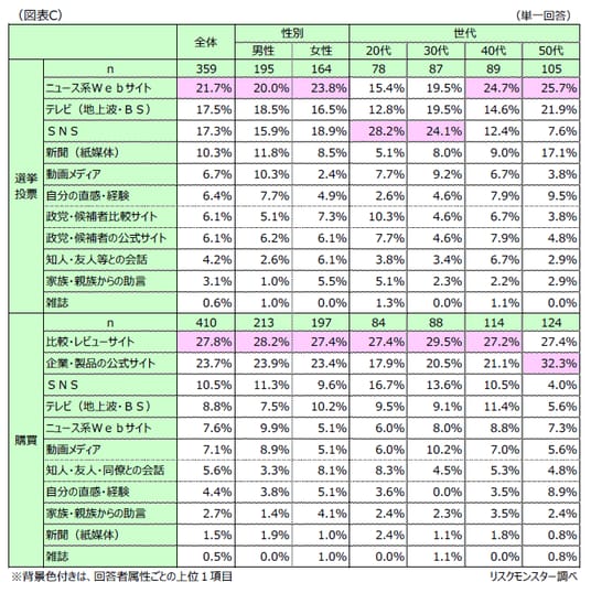 ~選挙ではテレビ・Webに加え若年層はSNS、購買ではレビュー重視~