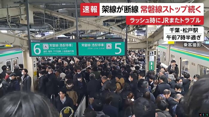また、千葉県の松戸駅ではホームに人があふれるなど、各地の駅で大きな影響が出た。
