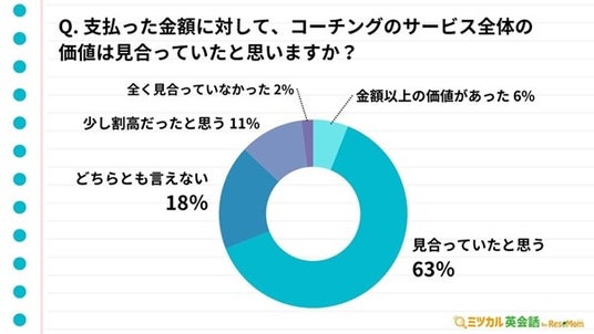 【63.0%がコーチングは受講料に「見合っていた」】サービス全体に金額相応の価値を実感