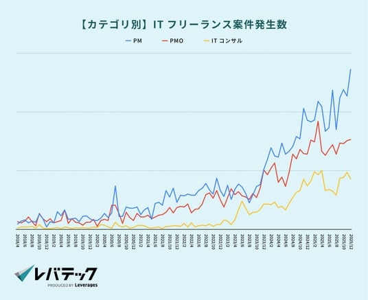「日本を、IT先進国に。」をビジョンに掲げるレバテック株式会社 ( https://levtech.jp/ ) は、「ITフリーランス市場動向」を発表します。本記事では、レバテックのデータをもとに、ITフリーランス市場における需給の変化を公開します。