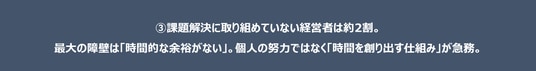 1.経営者の約8割が自身の「経営力」に課題を実感。