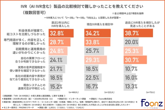 【IVR(AI IVR含む)の導入実態と選定課題】比較検討時の悩み第1位は「料金体系の複雑さ」!?導入後に後悔しない秘訣は「AI機能」と「運用性」の事前検証にあり