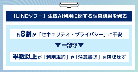 【LINEヤフー】生成AI利用に関する意識調査を実施 約8割が生成AIのセキュリティやプライバシーに不安を抱えるも、半数以上が「利用規約」や「注意書き」を確認せず