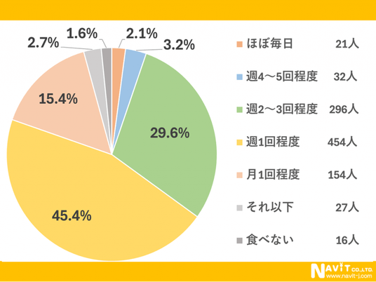 寒い時期にめん類を食べる頻度は、「週1回程度」が最多