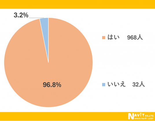 寒い時期(秋・冬)にめん類を食べますか?という質問については「はい」が96.8%、「いいえ」が3.2%という結果になりました。9割以上の人が寒い時期にめん類を食べていることが分かります。