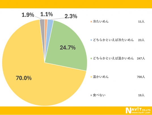 寒い時期に食べる麺類は、「温かいめん」を選んだ人が9割以上