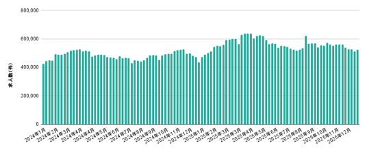 ■1月度の全国アルバイト・パート求人数は、523,649件(前月比-13,919件、前年同月比+50,971件)で前月から2.59%減少、前年同月から10.78%増加した。【図2】