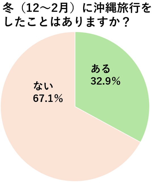 『ノジュール2月号』では「早春の沖縄」を特集。そこで「冬に沖縄旅行をしたことがあるか」も伺ってみました。「ある」という回答は32.9%。行ったことがある人にさらにおすすめを聞いたところ、「冬の沖縄で桜と最速で出合う」、「伊江島でのホエールウォッチング」、また、「プロ野球の沖縄キャンプに行く」というコメントが見られました。(n=590)