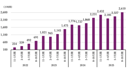 ・2025年4Q(2025年8-10月期)の延べ総労働時間(稼働実績)は2,610万時間(前年同期比+17.0%)