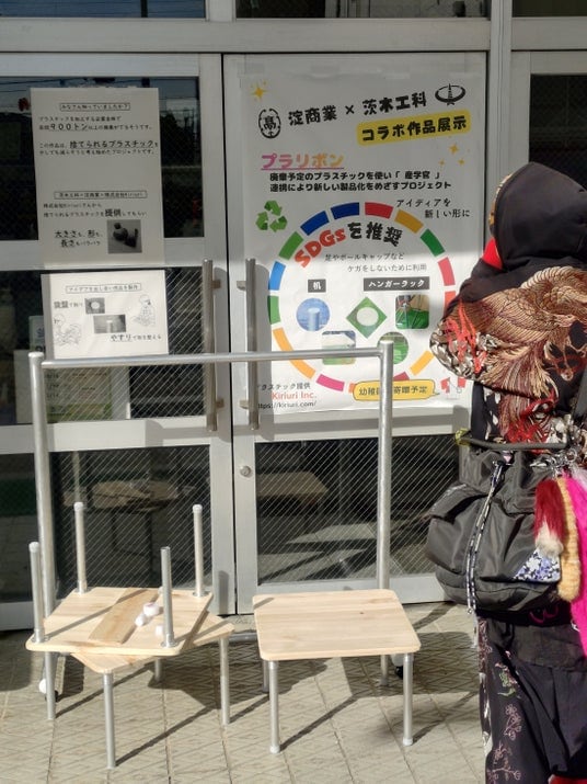 一方、淀商業高校の生徒たちはプロジェクトの名称決定や展示用ポスターの制作を担当し、「SDGsを推進」「廃プラスチックに新しい形を」というメッセージを視覚的に発信しました。