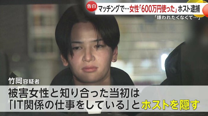 竹岡容疑者は被害者の女性と知り合った当初、IT関係の仕事をしていると話し自身がホストであることを隠していた。