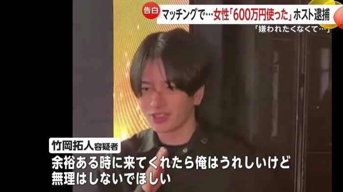 竹岡容疑者は、東京・歌舞伎町で働くホストクラブの従業員で、2025年1年間の売り上げは、約1億4000万円に上るほどの売れっ子ホストだという。