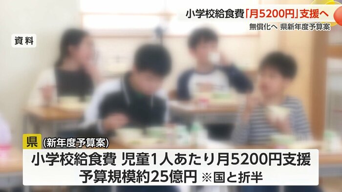 それによりますと、県は小学校の給食費無償化に向け、児童1人当たり月額5200円を支援するための経費を新年度予算案に計上する方針です。