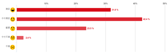 「やや満足」と回答した人が42.4%で約4割となり最も多く、「非常に満足」との回答と合わせると7割以上の人が満足していることがわかった。反対に、「やや不満」と回答した人は2.4%と僅かで、「不満」と回答した人はいなかった。