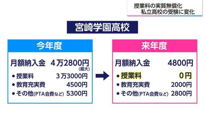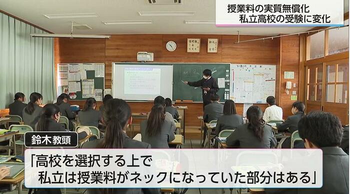 それが2026年度からは、私立高校への支援金が年間45万7200円まで引き上げられる見込みだ。支援金の増額で、私立高校の授業料は実質ゼロになる。こうした動きを受け、県内の私立高校では志願状況に変化が見られるという。