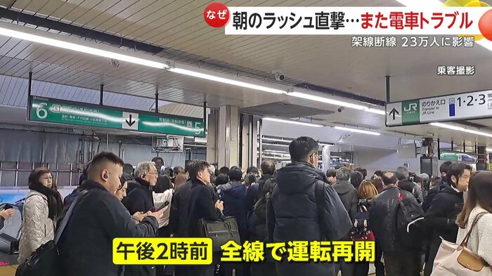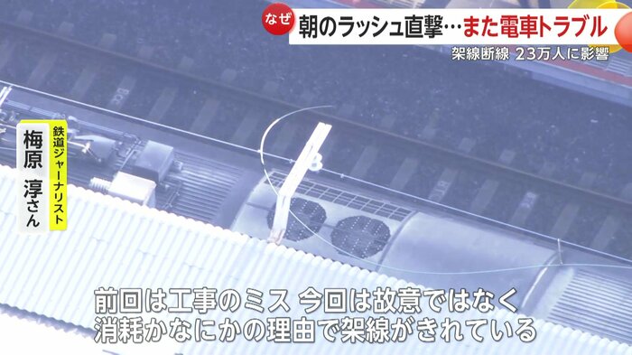 鉄道ジャーナリストの梅原淳さんは「前回は工事のミス。今回は故意ではなく、消耗かなにかの理由で架線が切れている。直接の関連はないが、冬の寒さというキーワードで関係するかも」と解説する。