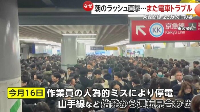 つい先日の1月16日、JR東日本では作業員の人為的ミスによる停電で、山手線などが始発から長時間運転見合わせになっていた。