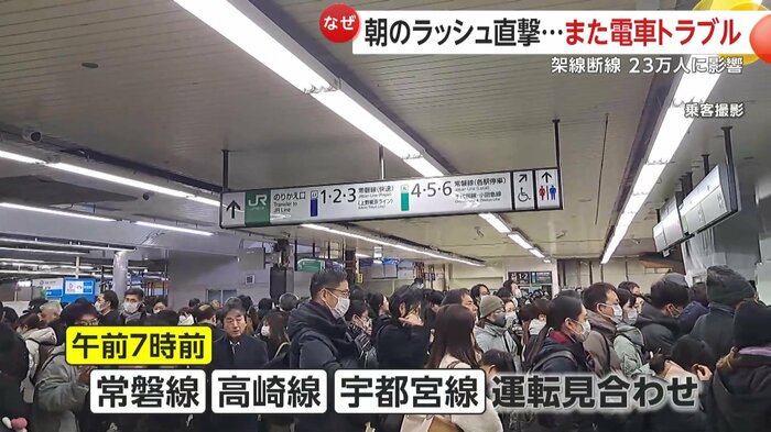 “朝のラッシュ”直撃…JR常磐線など運転見合わせ