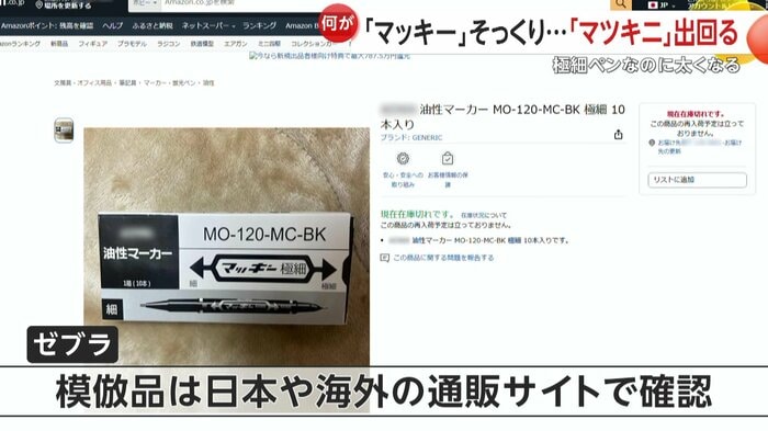 マッキーを製造・販売するゼブラによると、模倣品は日本や海外の通販サイトで確認されているという。