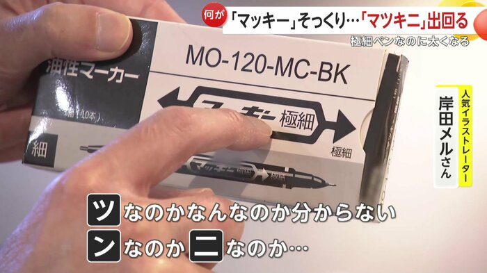 「ツなのかなんなのか分からない。ンなのか二なのか…。買った時にはマッキーと書いてあった」と語るのは世界的な人気を誇るイラストレーターの岸田メルさん。
