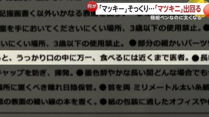 ペンを見ると本物そっくりに「マッキー」と書かれていたが、箱には「マツキニ」の文字。