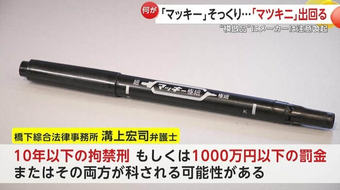 人気文具「マッキー」に酷似した模倣品「マツキニ」が通販サイトで出回り、利用者から品質の違和感が相次いでいる。パッケージには不自然な日本語が記され、線のにじみなど本物との差も現れている。「マッキー」の製造元ゼブラは「模倣品を買わない・売らせない市場環境を作っていければ幸いです」と注意喚起を行った。