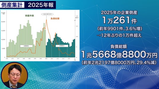 企業信用調査を手がける株式会社帝国データバンク(本社:東京都港区、社長CEO:後藤健夫)は、公式ホームページにて2025年の全国企業倒産集計の解説動画を公開しました。
