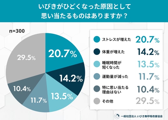 - いびき悪化の要因は「ストレスが増えた」20.7%が最多