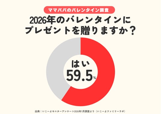 アンケートによると、今年のバレンタインにプレゼントを贈る予定があると答えたママ・パパは59.5%。約6割の家庭で、今年も変わらずバレンタインが大切なイベントとして意識されていることがわかります。
