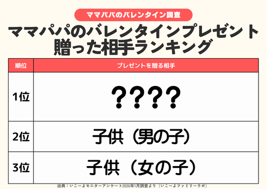 ▶家族で観たい「冬季オリンピック」競技ランキング▶子供のバレンタインランキング(https://iko-yo.net/articles/21814)
