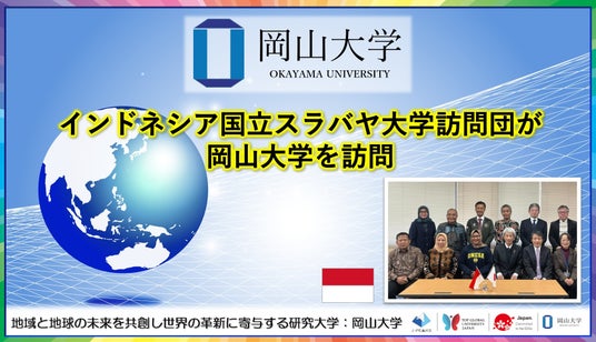 国立大学法人岡山大学(本部:岡山市北区、学長:那須保友)は、2026年1月21日、部局間協定校であるインドネシアの国立スラバヤ大学より、医学部長をはじめとする、言語文化学部長、食料安全保障学部長、教育学部長、経済学部長、法学部長らの訪問団が本学を訪れ、鈴木孝義副学長(国際・同窓会担当)への表敬訪問および本学の関係学部長との懇談会を実施しました。併せて、インドネシアが最重点国となっている文部科学省受託事業「日本留学促進のための海外ネットワーク機能強化事業」の紹介を行いました。