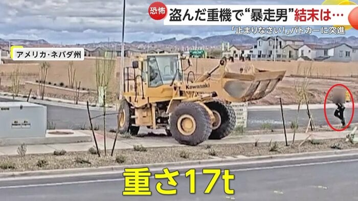 アメリカ・ネバダ州で、男が重機を奪い、暴走する一部始終がカメラに捉えられた。男は警察官の警告にも従わず、最終的にはパトカーに乗り上げて停止した。