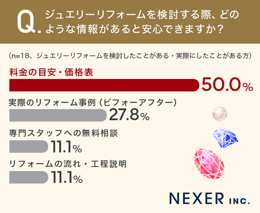 最後に、ジュエリーリフォームを検討した経験のある方に、どのような情報があると安心できるかを聞いてみました。