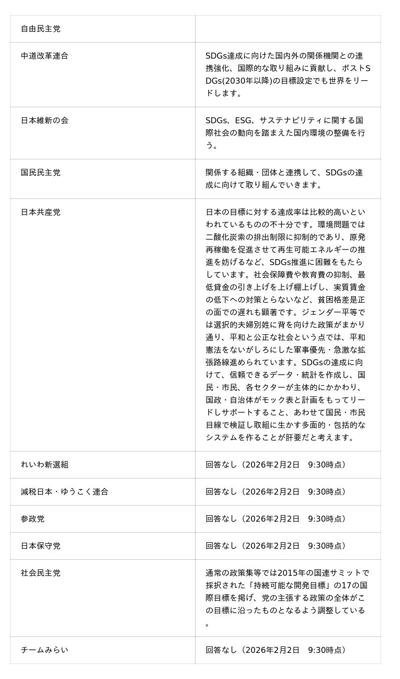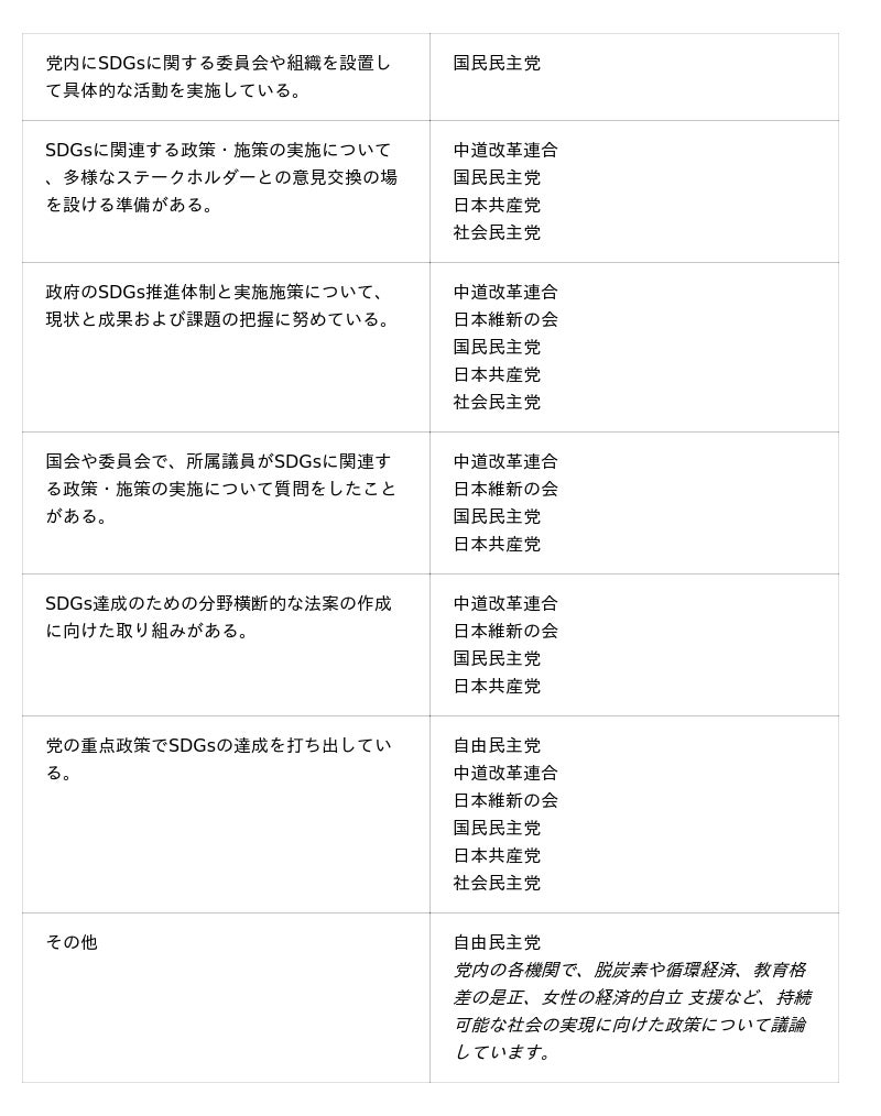 調査名:第51回衆議院議員選挙 SDGsに関する政党アンケート