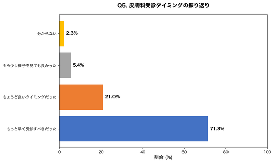 設問:(皮膚科を受診した方へ)受診のタイミングについてどのように感じましたか?