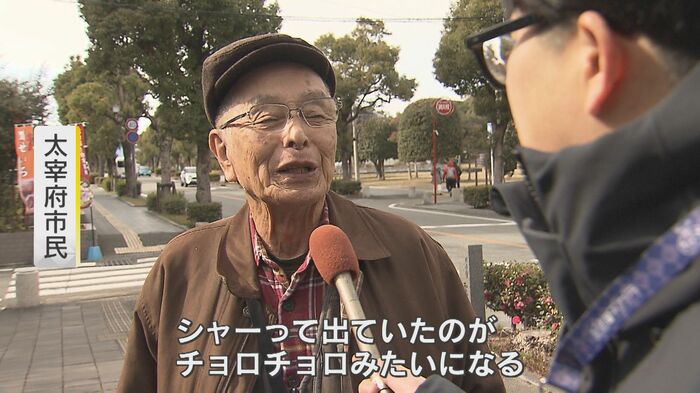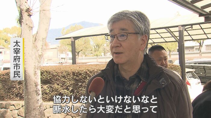 太宰府市民に話を聞くと「協力しないといけないなと思っている。断水したら大変」と応える男性。