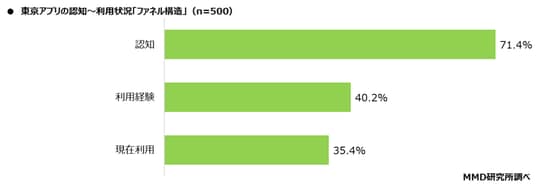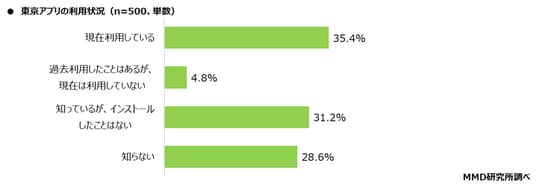 東京アプリの現在利用率は35.4%、認知率は71.4%
